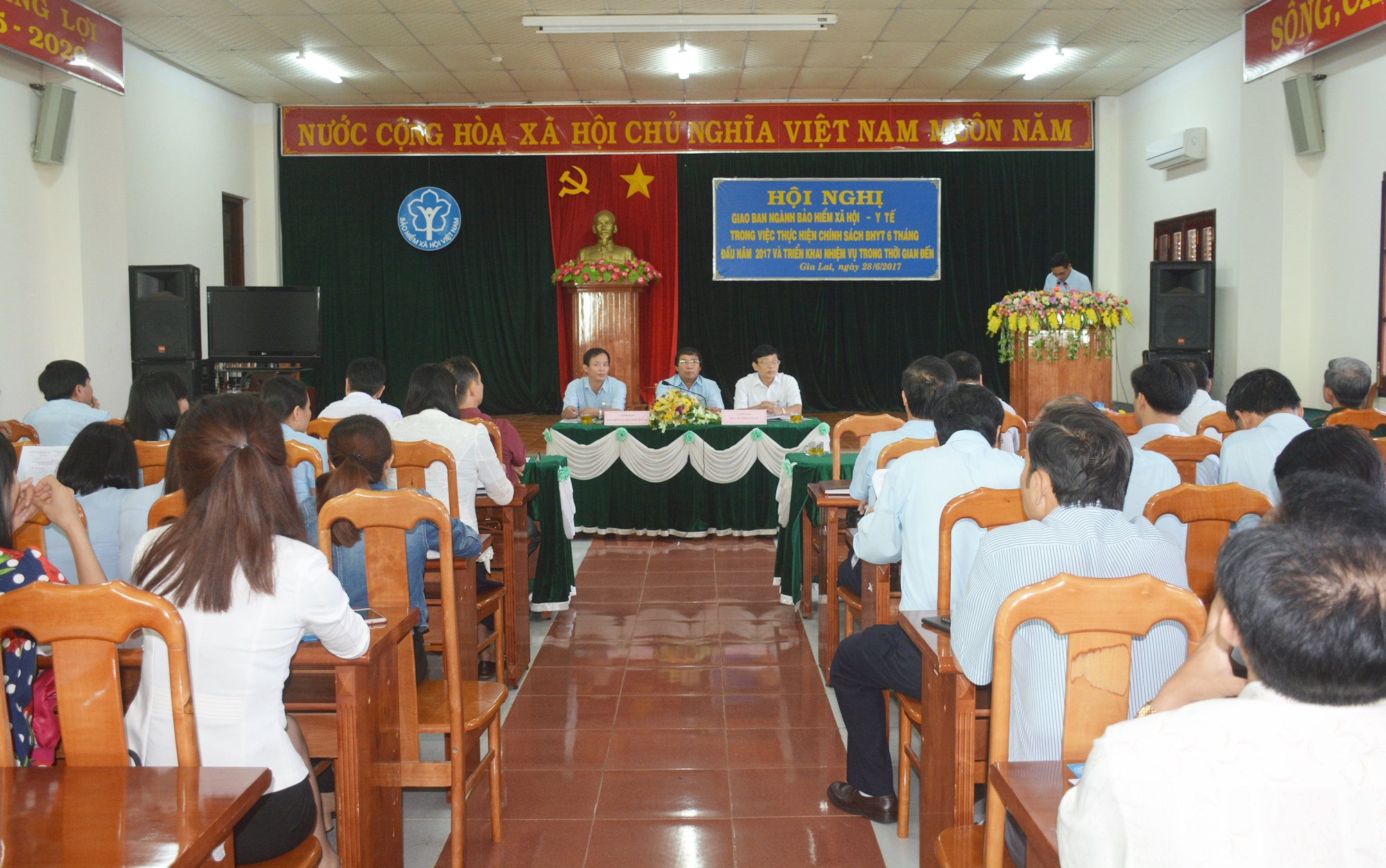 Sáng ngày 28/6/2017, Bảo hiểm xã hội (BHXH) tỉnh phối hợp cùng Sở Y tế tỉnh Gia Lai tổ chức Hội nghị giao ban công tác thực hiện chính sách Bảo hiểm y tế (BHYT) 6 tháng đầu năm và triển khai nhiệm vụ 6 tháng cuối năm 2017.