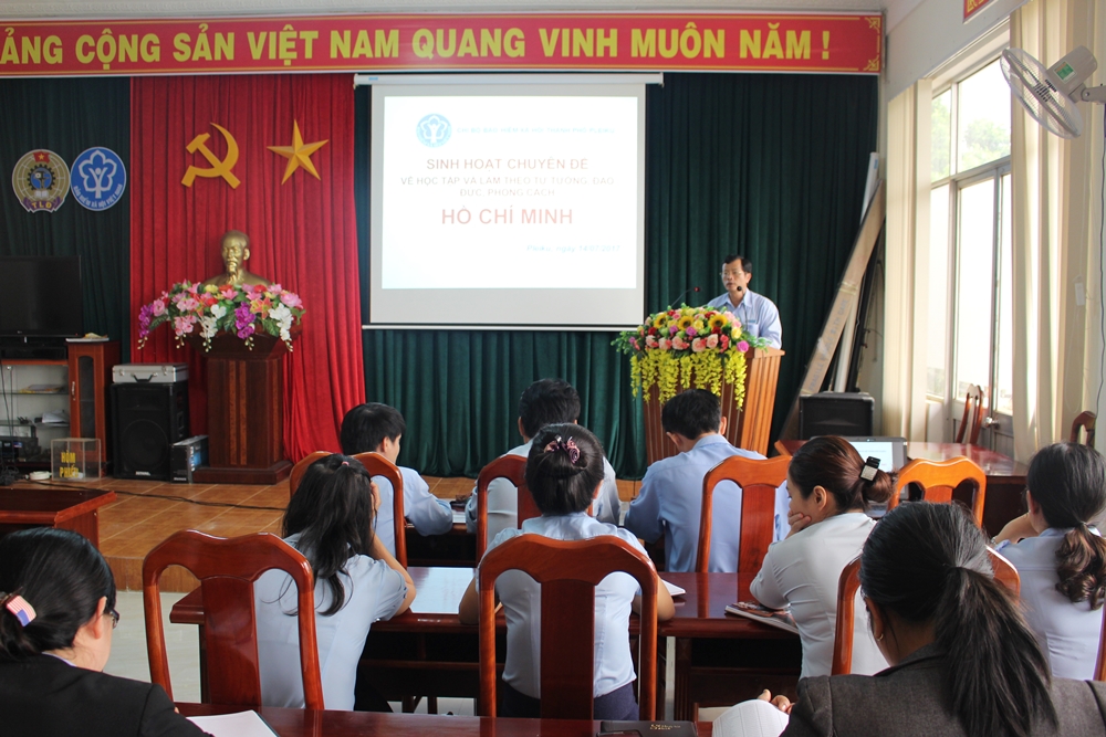 Chiều ngày 14/7/2017, Chi bộ BHXH thành phố Pleiku tổ chức sinh hoạt chuyên đề về học tập và làm theo tư tưởng, đạo đức, phong cách Hồ Chí Minh chuyên đề về “Phòng, chống suy thoái tư tưởng chính trị, đạo đức lối sống, “tự diễn biến”, “tự chuyển hóa” trong nội bộ”.