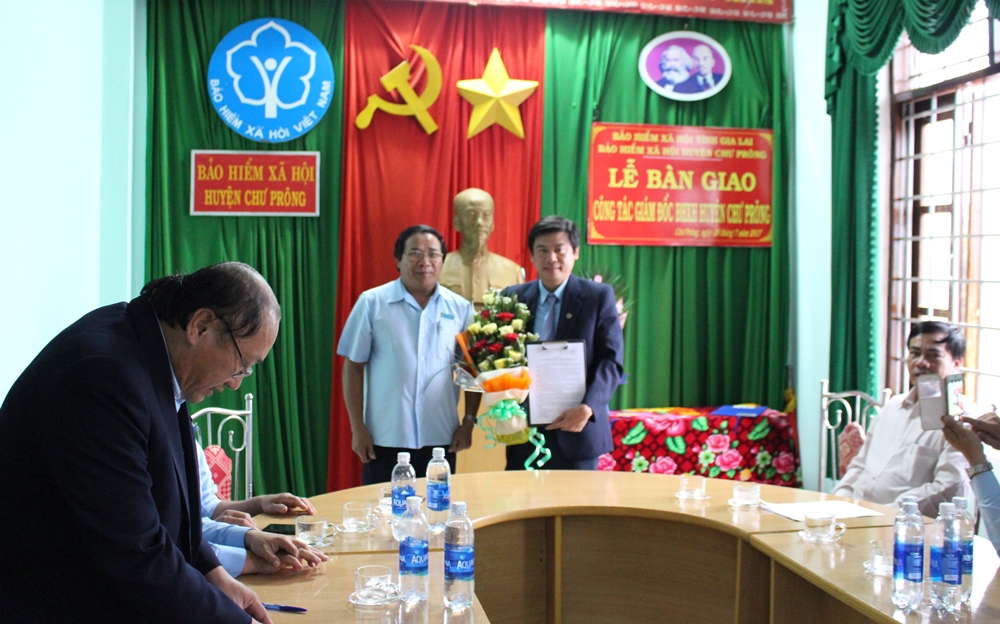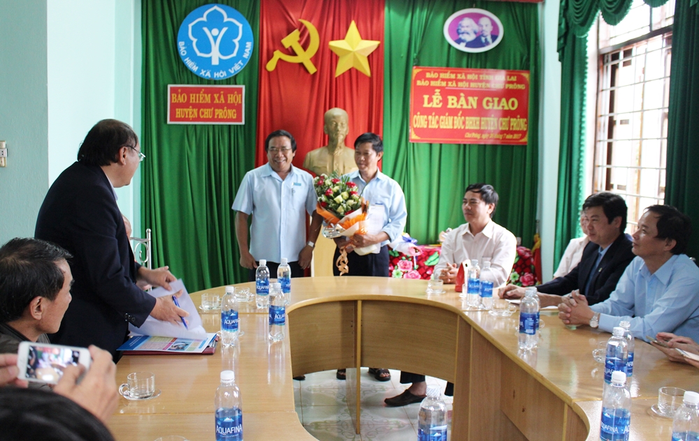 Chiều 26/7/2017, BHXH tỉnh Gia Lai đã tổ chức lễ trao quyết định nghỉ hưu và điều động bổ nhiệm viên chức quản lý BHXH huyện Chư Prông; bàn giao nhiệm vụ giữa đồng chí Phạm Ngọc Tú - Giám đốc BHXH huyện Chư Prông với đồng chí Hoàng Dũng Tiến - Phó Giám đốc phụ trách BHXH huyện Chư Prông. Dự buổi lễ, đồng chí Thới Văn Đạo - Bí thư Đảng ủy, Giám đốc BHXH tỉnh Gia Lai, đồng chí Ksor Việt - Phó Chủ tịch UBND huyện Chư Prông, lãnh đạo các phòng thuộc BHXH tỉnh Gia Lai.