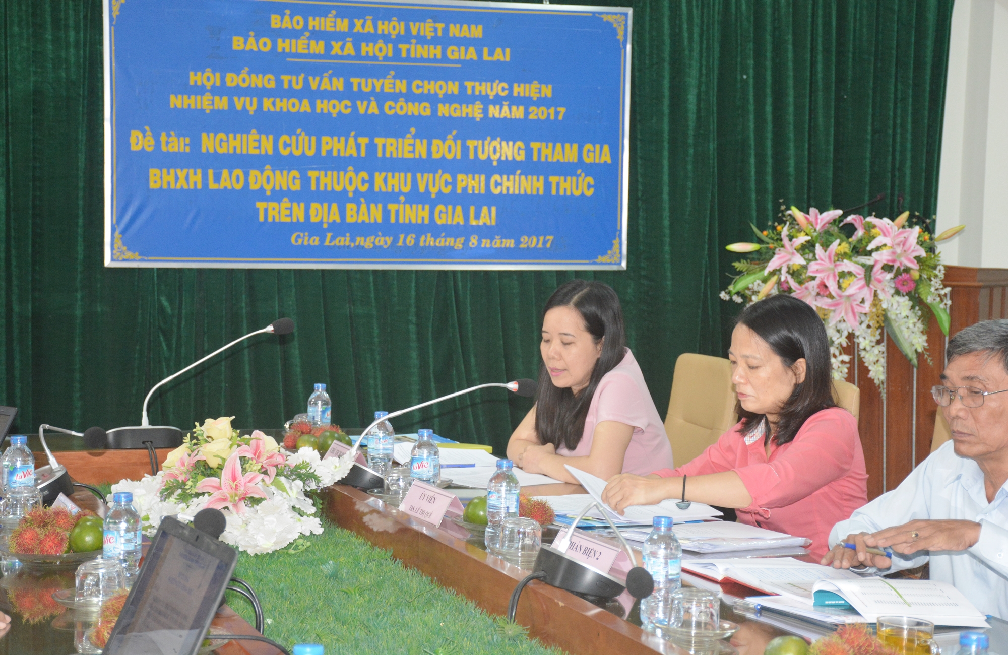 Sáng ngày 16/8/2017, tại Bảo hiểm xã hội (BHXH) tỉnh Gia Lai, Hội đồng tư vấn tuyển chọn thực hiện nhiệm vụ khoa học và công nghệ cấp cơ sở năm 2017 của BHXH Việt Nam do TS. Nguyễn Thị Thanh Hương - Viện trưởng Viện Khoa học BHXH Việt Nam làm Chủ tịch Hội đồng, cùng các thành viên Hội đồng tư vấn
