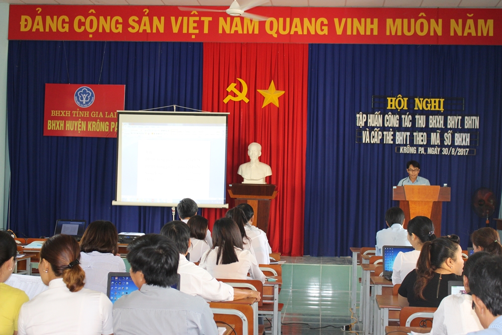 Sáng ngày 30/08/2017, tại Hội trường Trung tâm bồi dưỡng chính trị huyện, BHXH huyện Krông Pa đã tổ chức tập huấn công tác thu BHXH, BHYT, BHTN và cấp thẻ BHYT theo mã số BHXH cho UBND các xã, thị trấn và các đơn vị sử dụng lao động trên địa bàn huyện đồng thời quán triệt một số nội dung về công tác cấp thẻ BHYT năm 2018.