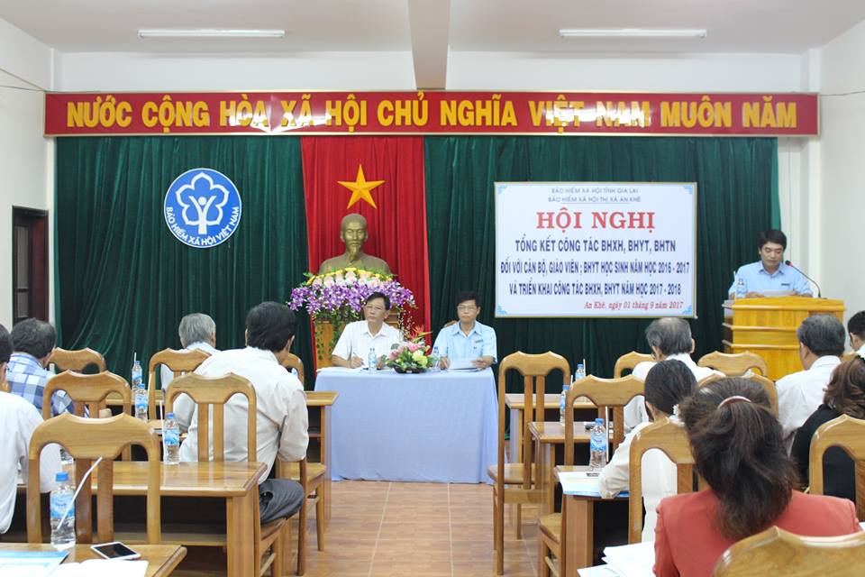 Vừa qua, BHXH thị xã An Khê phối hợp với Phòng Giáo dục-Đào tạo thị xã tổ chức hội nghị tổng kết thực hiện chính sách BHXH, BHTN đối với cán bộ, giáo viên, và BHYT học sinh năm học 2016-2017.