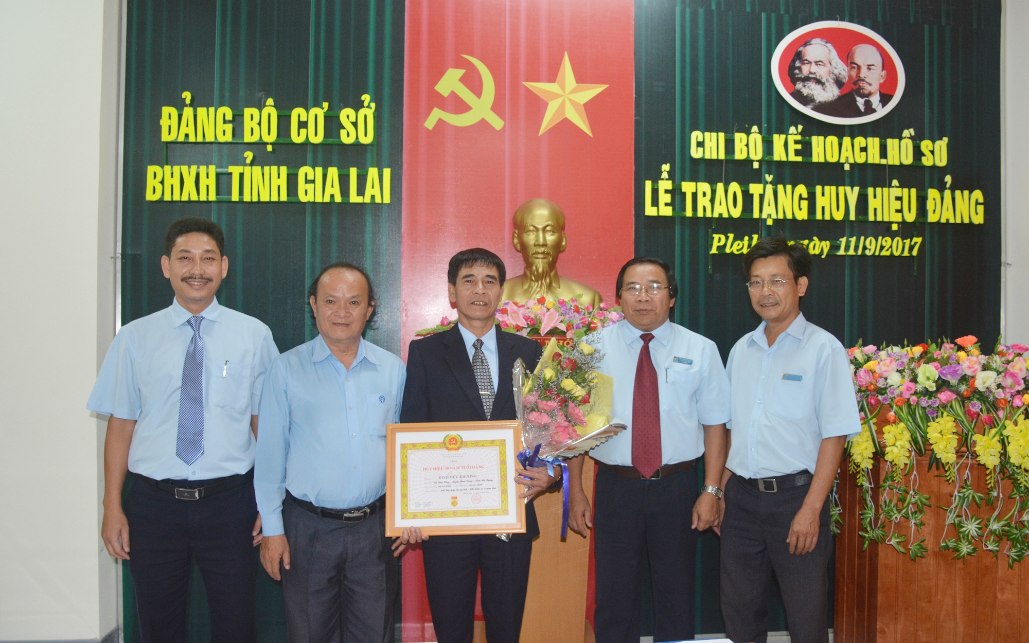 Chiều ngày 11/9/2017, Chi bộ Kế hoạch Hồ sơ thuộc Đảng bộ cơ sở Bảo hiểm xã hội tỉnh Gia Lai đã tổ chức lễ trao tặng huy hiệu 30 năm tuổi Đảng cho đồng chí Đinh Hữu Khương, Phó Bí thư chi bộ Kế hoạch Hồ sơ, Trưởng phòng Tiếp nhận và trả kết quả thủ tục hành chính.