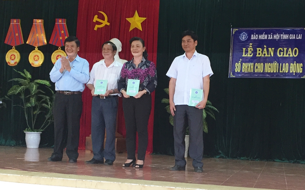 BHXH tỉnh Gia Lai kiểm tra, giám sát việc trao sổ BHXH cho người lao động.