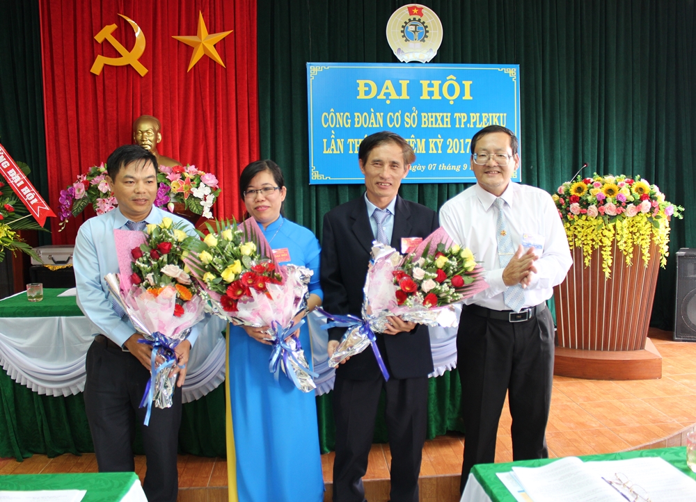 Vừa qua, Công đoàn cơ sở BHXH Thành phố Pleiku tổ chức Đại hội lần thứ 4, nhiệm kỳ 2017-2022. Tham dự Đại hội có đồng chí Nguyễn Hữu Cẩn - Ủy viên Ban Thường vụ Liên đoàn Lao động (LĐLĐ) tỉnh, Chủ tịch LĐLĐ thành phố Pleiku; đồng chí Dương Kim Văn - Bí thư Chi bộ, Giám đốc BHXH thành phố Pleiku và toàn thể đoàn viên Công đoàn.
