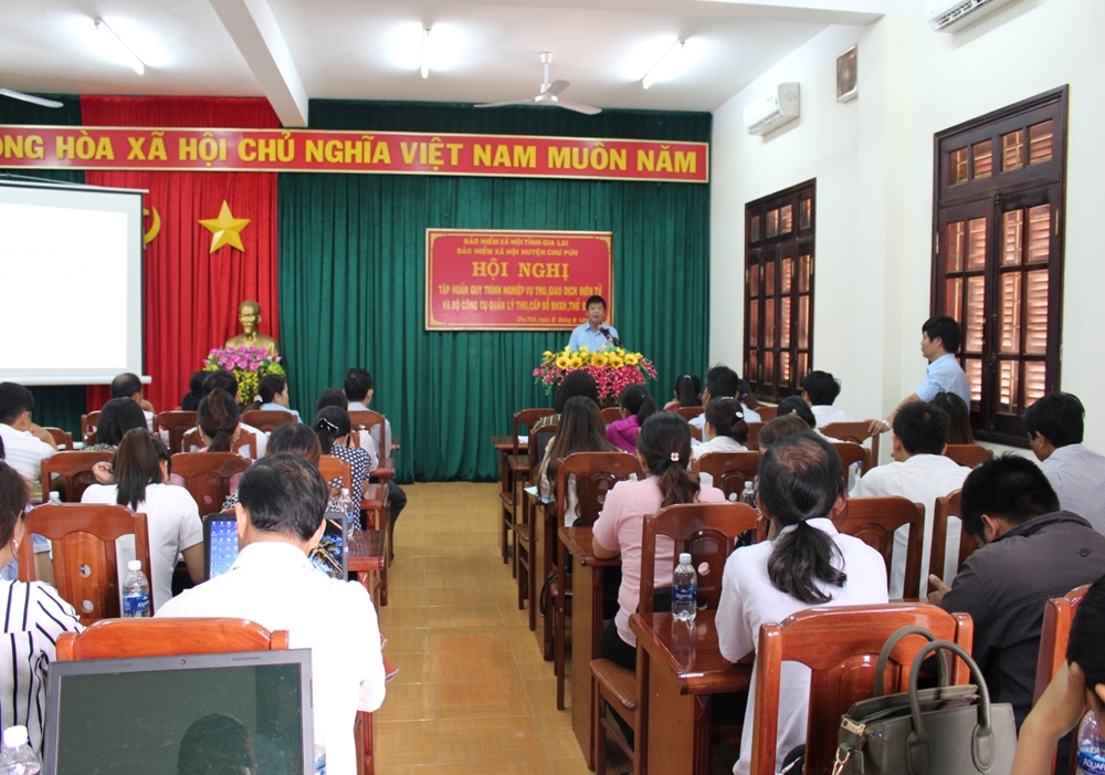 Vừa qua, BHXH huyện Chư Pưh đã tổ chức Hội nghị tập huấn hướng dẫn triển khai thực hiện giao dịch điện tử về BHXH, BHYT, BHTN, cấp mã số BHXH cho 150 cán bộ phụ trách công tác BHXH, BHYT của đơn vị sử dụng lao động; UBND các xã, thị trấn; Bưu điện huyện; đại lý thu BHYT hộ gia đình.