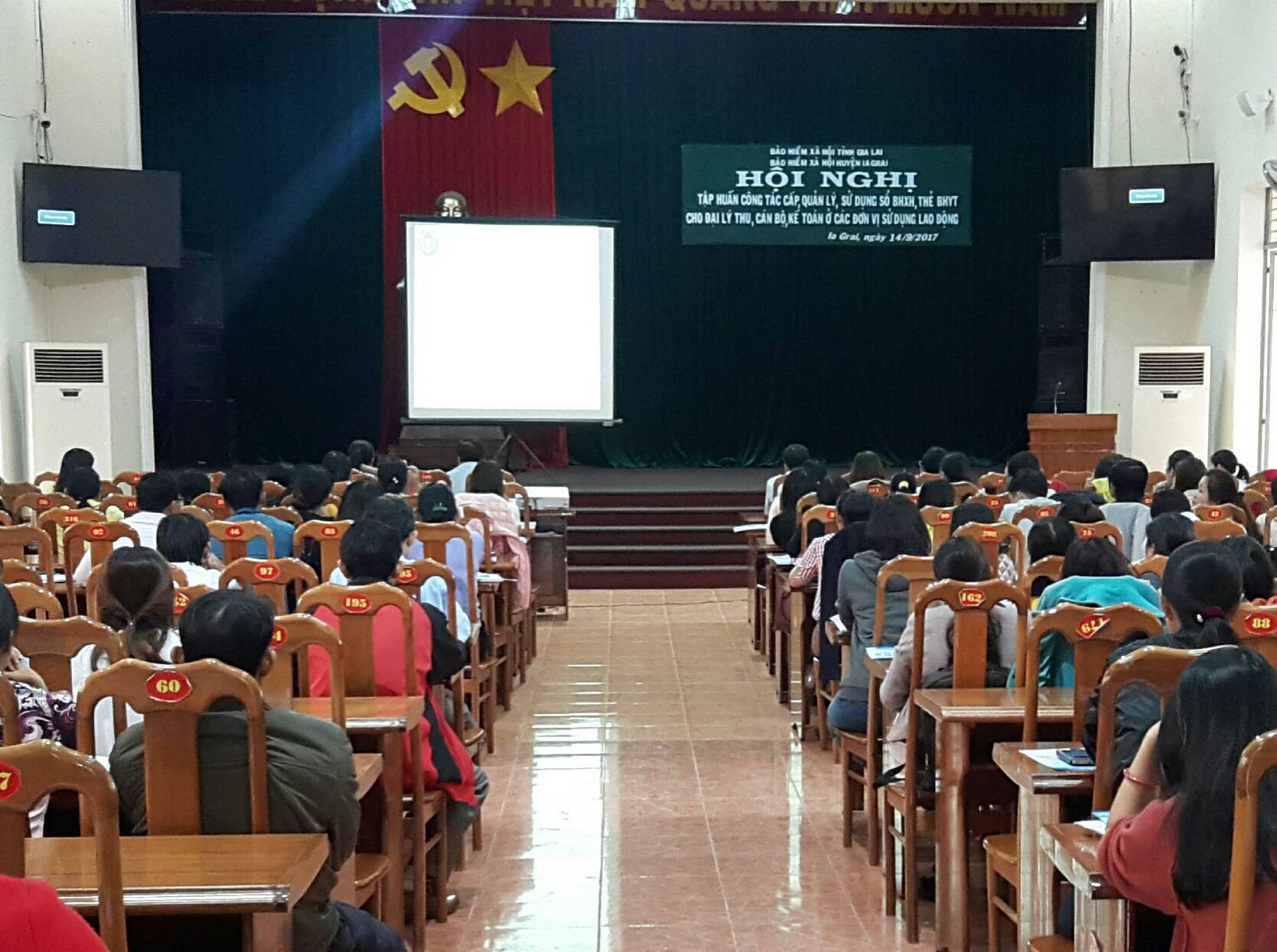 Vừa qua, Bảo hiểm xã hội (BHXH) huyện Ia Grai đã tổ chức tập huấn triển khai quy trình nghiệp vụ thu, cấp sổ BHXH, thẻ BHYT; hướng dẫn rà soát mã số BHXH theo Quyết định 595/QĐ-BHXH cho 132 đại biểu là cán bộ Văn hóa xã hội các xã, thị trấn; kế toán bộ phụ trách công tác BHXH tại các đơn vị sử dụng lao động, kế toán các trường học trên địa bàn huyện.