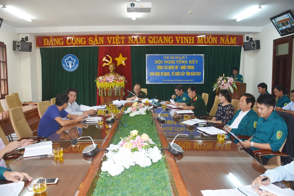 Ngày 26 tháng 10 năm 2017, tại Bảo hiểm xã hội (BHXH) tỉnh Gia Lai, Ban Chỉ huy quân sự (CHQS) các cơ quan, tổ chức thuộc Cụm thi đua số 2 – Bộ CHQS tỉnh tổ chức Hội nghị tổng kết công tác Quân sự - Quốc phòng (QS-QP) năm 2017, triển khai nhiệm vụ QS-QP năm 2018.