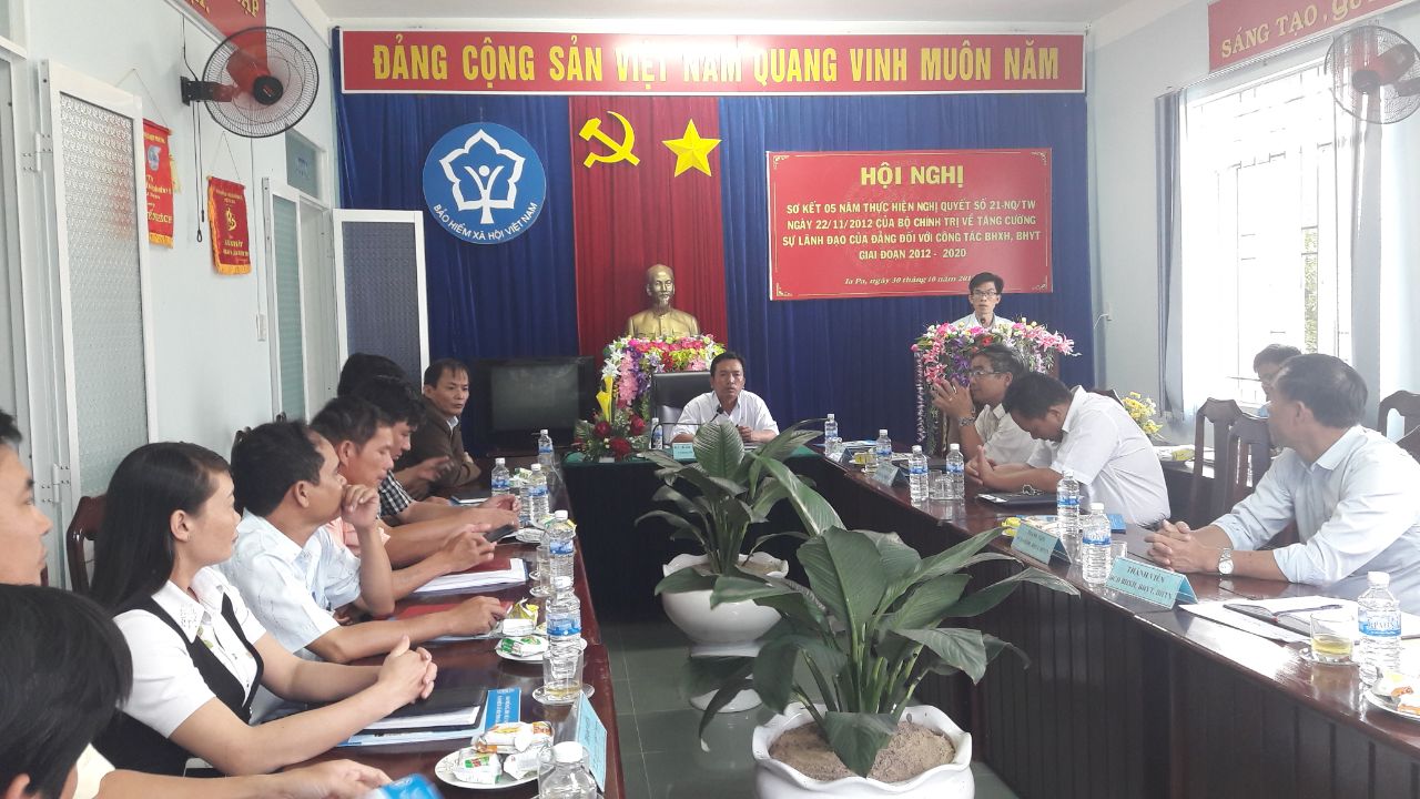 Ngày 30/10/2017, Ban chỉ đạo thực hiện BHXH, BHYT, BHTN huyện Ia Pa tổ chức sơ kết 5 năm thực hiện Nghị quyết 21-NQ/TW ngày 22/11/2012 của Bộ Chính trị về tăng cường sự lãnh đạo của Đảng đối với công tác BHXH, BHYT giai đoạn 2012- 2020 trên địa bàn.